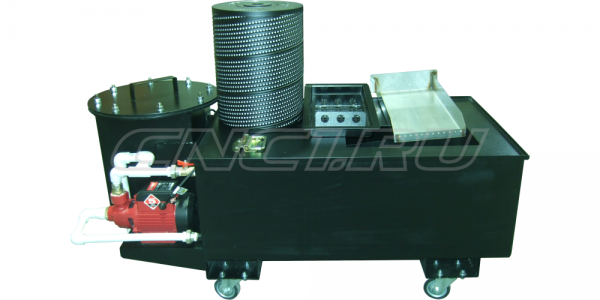 Станция очистки рабочей жидкости (СОРЖ) FCS-1100 предназначена для замены комплектных станций электроэрозионных проволочно-вырезных станков типа DK77xx или аналогичных. Производительность станции до 1100 литров в час. Применение специального водяного бумажного фильтра тонкой очистки (5-10 мкм), дополнительного быстросъемного магнитного фильтра-ловушки из немагнитного металла и отстойников увеличенной ёмкости позволяет кратно увеличить срок службы рабочей жидкости и ресурс молибденовой проволоки по сравнению с комплектными очистными установками.